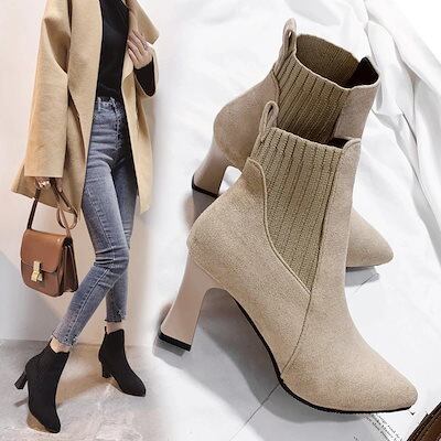 Qoo 10限定 シューズ 厚底 ショートブーツ ブーティー レディース ストレッチブーツ ブーツ シンプル 太ヒール ポインテッドト 秋冬2024新作ロングブーツが復活! | KAGEYAMA-SECOND