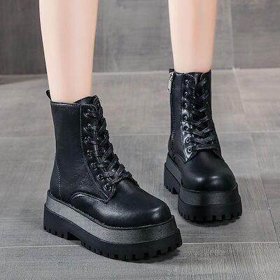 【3日以内出荷】厚底シューズ 2023年新型冬のマーチンブーツソフトレザーインロンハイヒールハイカットブーツレディース 韓国