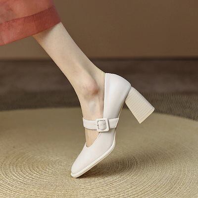 2024 春夏 シューズ スタイルアップ!ヒールパンプス フランスのレトロな靴 太さと新しい浅いハイヒールの茶色メリージェーン靴 ミュールサンダル レディース 美脚 脚やせ 歩きやすい | KAGEYAMA-SECOND