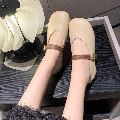 2024 春夏 シューズ 可愛い パンプス ソフトソール カジュアル 太ヒール レザー ミュールサンダル レディース 美脚 脚やせ 歩きやすい