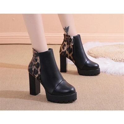 ショートブーツ ヒョウ柄 売れ筋 レディース チャンキーヒール サイドジップ 歩きやすい 太ヒール シンプル 楽ちん 通勤 きれいめ 婦人靴