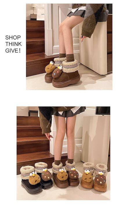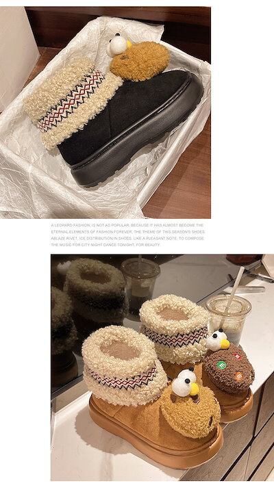 メガ割 メガ割りモコモコ靴 厚底スニーカー レディース アウター 秋冬新作 皮毛一体 厚底スノーブーツ包頭 滑り止め フラットシューズ コットンスリッパ福袋スノーブーツ | KAGEYAMA-SECOND