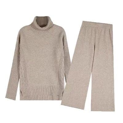 高級感レディースニットセット 秋冬新作 タートルネックセーター+ワイドパン ニット二点セット 怠惰な風 オシャレ 気質 上下レディースセット 通勤 長袖セーター ロングパンツ 二点セット | KAGEYAMA-SECOND