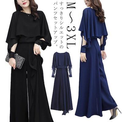 パンツスーツ セットアップ レディース シフォン パンツドレス 2点セット ワイドパンツ パーティードレス ロング パンツ ブラウス シャツ フォーマル 春 夏 秋 大きいサイズ スーツ オフィス O | KAGEYAMA-SECOND