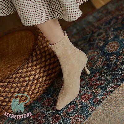 ショートブーツ レディース ピンヒール ブーティ スエード 歩きやすい ブーツ 痛くない 疲れない カジュアル シューズ 通勤 美脚 おしゃれ