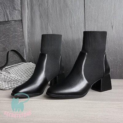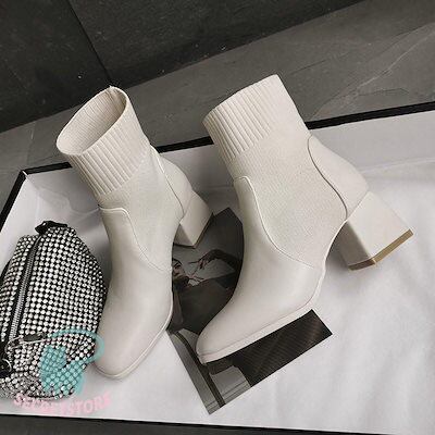 ショートブーツ レディース ソックスブーツ チャンキーヒール ブーティ 歩きやすい ブーツ 痛くない 疲れない カジュアル シューズ 美脚 太ヒール