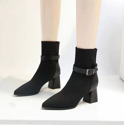 【3日以内出荷】ショートブーツ レディース ソックス風 歩きやすいニットブーツ チャンキーヒール おしゃれ 太ヒール 可愛い おしゃれ 靴 美脚 脚長
