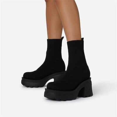 【3日以内出荷】ショートブーツ ソックス風 レディース ニットブーツ チャンキーヒール 太ヒール 靴 美脚 脚長 無地 快適 売れ筋 可愛い おしゃれ