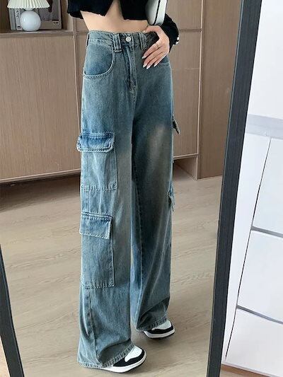 デニムパンツ ワークウェア ジーンズ レディース 新作 ゆったり ハイウエスト ストレート ワイドパンツ デニムパンツ