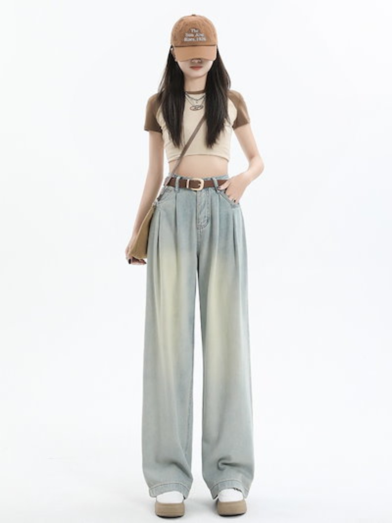 デニムパンツ 脚長効果!百掛けフレンチヴィンテージ 韓国ファッションワイドパンツ美脚ワイドパンツ スウェットパンツ デニムテーパードパンツ ゆったり ワイドパンツ レディース ロングパンツ | KAGEYAMA-SECOND