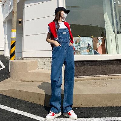 春 夏デニムボトムス サロペット ワイドパンツ 韓国ファッション レディース レディース 春 オーバーオール ジーンズ