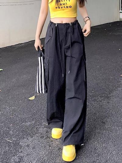 2024夏 韓国パンツ ロング丈 サイドポケット ワイド ストレート ハイウエスト 美脚効果 脚長効果 細見え 夏 白 黒 黄色 茶色 青 おしゃれ かわいい 韓国ファッション レディース お出かけ
