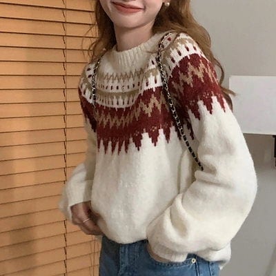 ニット 柄 セーター レディース 秋冬 ニットセーター プルオーバー 長袖 ニットソー トップス ブラウス ニット セーター ショート丈 ふんわり ラウンドネック ニットトップス ゆったり 柔らかい | KAGEYAMA-SECOND