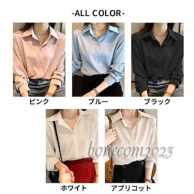 襟付き とろみ きれいめ 春夏 大きいサイズ 秋冬 おしゃれ 前開き ボタン オフィス シワになりにくい ブラウス レディース トップス シャツ 長袖 シフォン