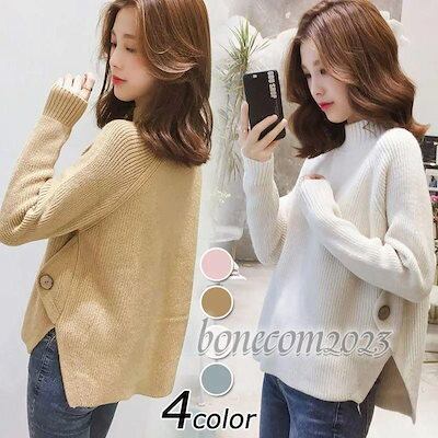 レディース秋冬 トップス ニットセーター 無地 セーター 長袖 ゆったり ニット ミドル丈 セーター代/代 ニットソー 丸首 スリットセーター 色 韓国風