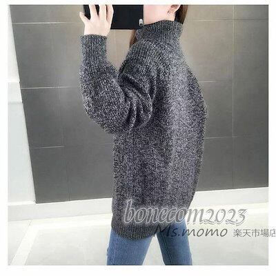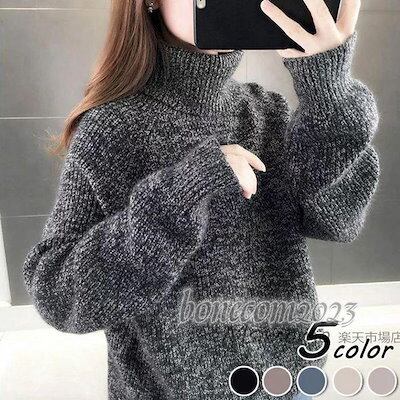 ハイネックショット丈プルオーバー 代 レディース ニットトップス 大人韓国風 無地セーター ニットトップス ゆったりにトソー 秋冬代長袖 オシャレ
