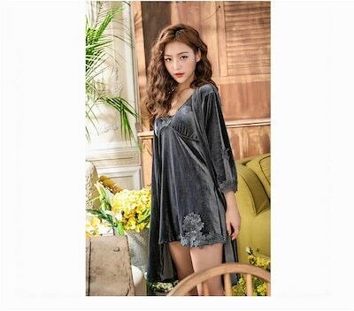 パジャマ 部屋着 ベルベット レース ランジェリー ルームウェア 秋冬 セクシー レディース 4点パジャマ ロングパンツ ルームウェア 寝巻き 前開き 長袖ガウン