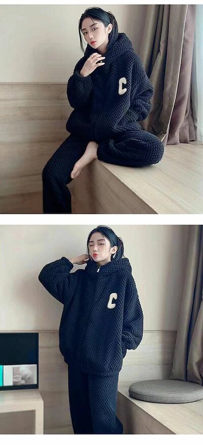寝巻き 可愛い 韓国風 秋冬 XL パジャマ プレゼント M 部屋着 上下セット 秋冬 モコモコ 長袖 レディース 暖かい 20代30代40代プレゼント L ルームウェア 厚手 フーディー パジャマ | KAGEYAMA-SECOND