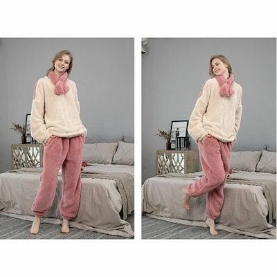 長袖 フランネル プルオーバー XXL 部屋着 韓国風 厚手 M 20代30代40代50代プレゼント 秋冬 セットアップ モコモコ パジャマ XL 寝巻き レディース 上下セット 可愛い 暖かい ルー