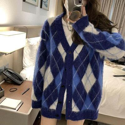 カーディガン ニット アーガイル柄 長袖 大きいサイズ Vネック ロング レディース アウター 萌袖 羽織り 上着 前開き カジュアル きれいめ 大人 かわいい 秋おすすめ商品 | KAGEYAMA-SECOND