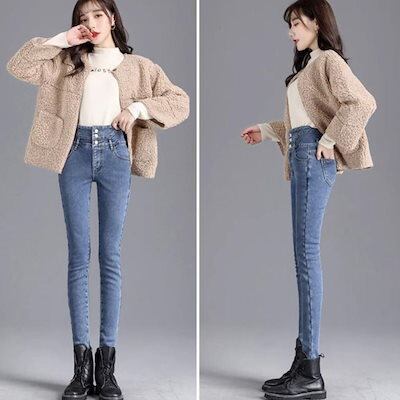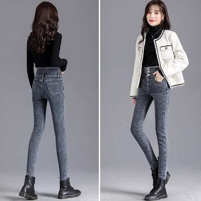 デニムパンツ スキニーパンツ レディース ハイウエスト ストレッチ デニム デニムパンツ ロングパンツ 裏起毛 裏シャギー あたたかい 極暖 ヒート おしゃれ タイト 美脚 | KAGEYAMA-SECOND