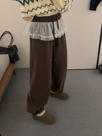 激安セール カジュアルパンツ ロングパンツ スラックス レディース ししゅう レース レース装飾 快適である 厚め ゆったりする 足を束ねる