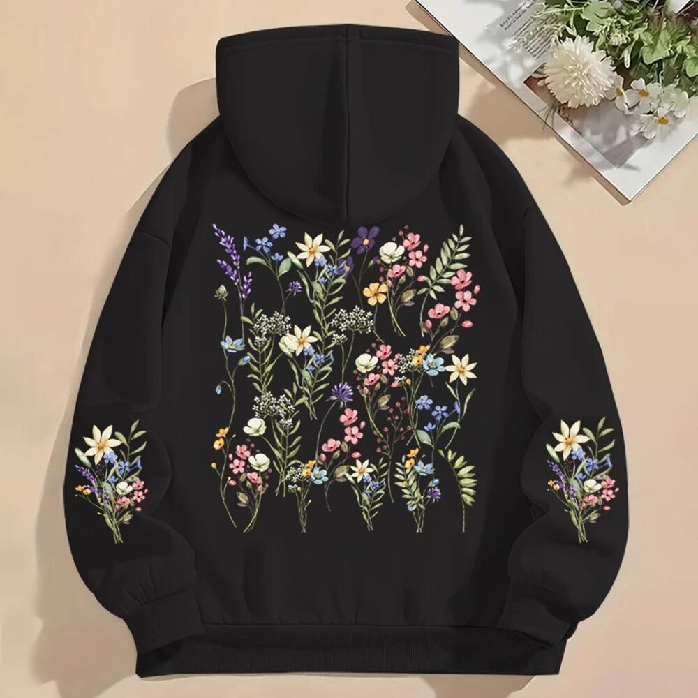 女性用y2kフード付きスウェットシャツ,ワイルドフラワープリント,ルーズフィット,長袖,ポケット,自由奔放に生きる,植物スタイル,ヴィンテージ パーカー ジャージ y2k T240908170105_02 | KAGEYAMA-SECOND