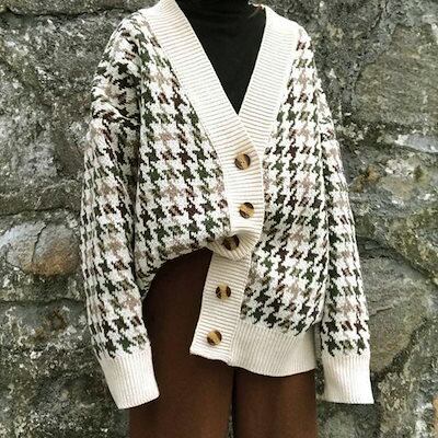 千鳥柄カーディガン レディース 韓国秋冬 ニットカーディガン レディース アウター 秋冬 新作 ミディアム丈 羽織り ゆったり