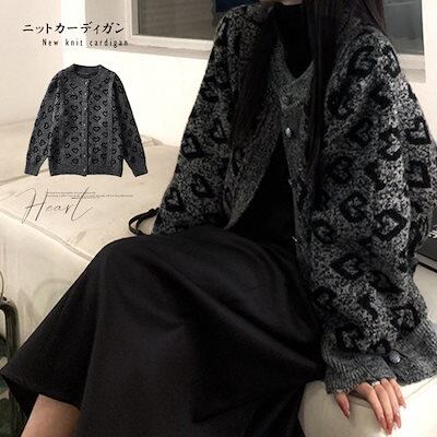 ニットカーディガン 柄 レディース 韓国 ニットカーディガン レディース アウター 秋冬 新作 ミディアム丈 羽織り ゆったり