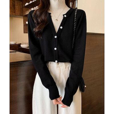レイヤード風 ニットトップス ハイネック ニットカーディガン レディース アウター 秋冬 新作 ミディアム丈 羽織り ゆったり