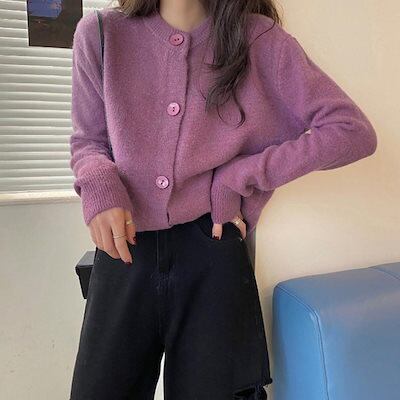 ニットカーディガン レディース ニットトップス 長袖 アウター 秋冬 ニットソー 韓国風 シンプル 無地カーデ 大人かわいい