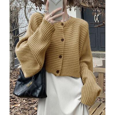 ドルマンニットトップス ショート丈ニット ニットカーディガン レディース アウター 秋冬 新作 ミディアム丈 羽織り ゆったり