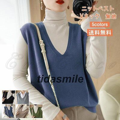 ニットベスト レディース ベストセーター 無地 Vネック ノースリーブ トップス カジュアル コーデ 暖かい ゆったり シンプル 春秋冬 おしゃれ