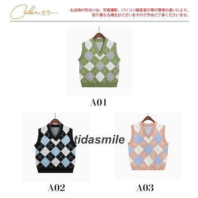 ニットベスト レディース レイヤード プルオーバー チェック柄 チョッキ アーガイル カジュアル ゆったり 着痩せ 春 秋冬 おしゃれ 学生 お出かけ