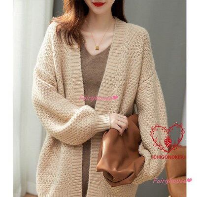 ニットカーディガン レディース 秋冬 40代 長袖 ニットコーディガン 無地セーター ミディアム丈セーター ゆったりアウター オシャレ大人上品 韓国風30代50代
