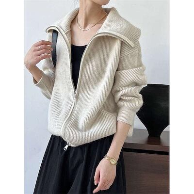 ニット レディース 秋 冬 セーター 長袖 カーディガン ジャケット アウター コート リブニット 羽織り スタンドカラー ジッパー 2way 厚手 防寒 セーラーカラー | KAGEYAMA-SECOND