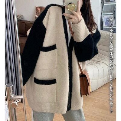 コーディガン ニットカーディガン レディース バイカラー切り替え ポケット付き シングル 大きいサイズ オーバーサイズ トップス ニット アウター 羽織り おしゃ