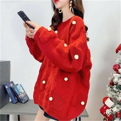 ニット セーター レディース 赤ニット トップス プルオーバー ニットソー 切替 長袖 ニット アウター ニットセーター 赤セーター オーバーサイズ ゆったり 長袖 秋 トップス 部屋着 uネック ル | KAGEYAMA-SECOND