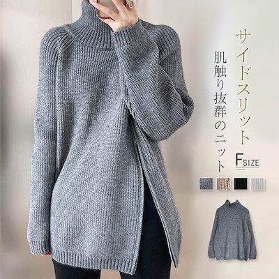 ニットセーター セーター ニット レディース 秋 冬 ジップアップセーター ジップアップ スリット トップス 長袖 ハイネック カットソー ダブルジップ サイドスリット リブニット 通勤 体型カバー | KAGEYAMA-SECOND