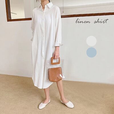 リネン混 シャツワンピ レディース ロングシャツ 綿麻混 シャツ トップス チュニック リネン シャツワンピース 長袖 ナチュラル 着痩せ ゆったり 体型カバー 可愛い カジュアル 春 夏 秋 | KAGEYAMA-SECOND