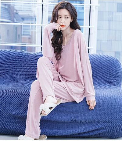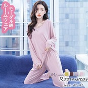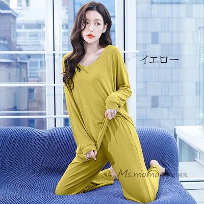 ロング丈ワイドパンツ上下セット 大人可愛いパジャマ 秋冬 モーダル綿ルームウェア 部屋着 オシャレ韓国風 パジャマ 寝間き ゆったり 無地Vネック レディース 女性 長袖パジャマ 快適 | KAGEYAMA-SECOND
