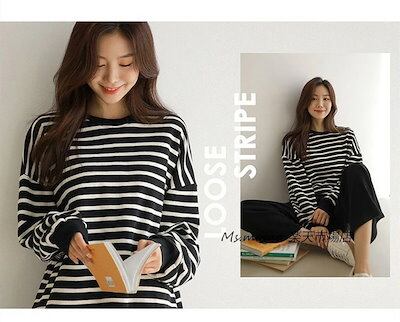 ルームウェア 綿100%ルームウェア 外出可 大人可愛い 寝巻き 快適 春秋冬 カジュアル韓国風パジャマ 上下セット ボーダー柄 部屋着 パジャマ 女性 長袖パジャマ レディース | KAGEYAMA-SECOND