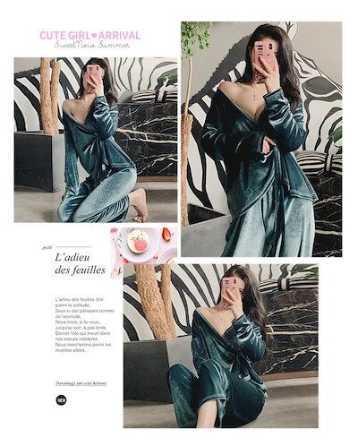 長袖 オシャレ セクシー2点セット ルームウェア vネックパジャマ ベルベット 厚手 前開き パジャマ レディース 暖かい パジャマ モコモコ パジャマ 冬 40代 ルームウェア | KAGEYAMA-SECOND