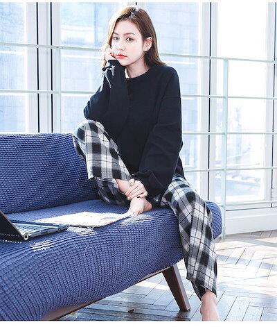 レディース パジャマ 可愛いルームウェア ルームウェア 部屋着大きいサイズ 韓国風 パジャマ ゆったり 長袖 春秋冬 ロング丈パンツパンツ上下セットパジャマ チェック柄 | KAGEYAMA-SECOND