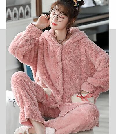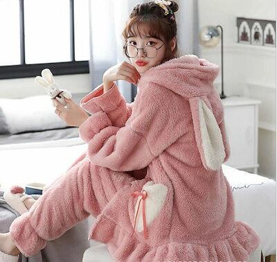 大きいサイズ 20代30代40代プレゼント L 2L 可愛い レディース 3L ルームウェア 羽織り ナイトロープ 長袖 寝巻き 冬 暖かい 韓国風 うさ耳 M 厚手 セットアップ フランネル 部屋着
