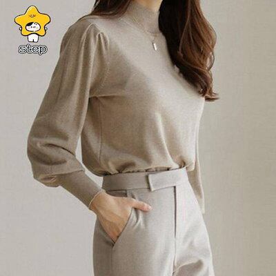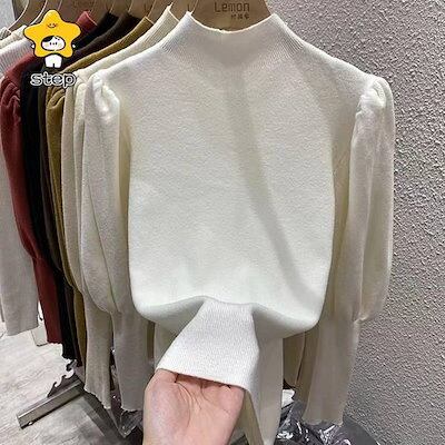 ニット レディース パフスリーブ 長袖 リブニット プチハイネック バルーン袖 無地 ス ボリューム袖 コーデ 秋 冬 春おすすめ商品