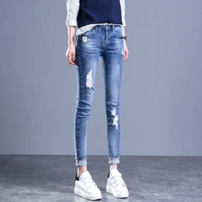 レディースパンツ美脚デニムパンツスキニーズボン極伸び美尻美脚スキニーデニムパンツナインポイントペンシルハイウエストスキニージーンズサロペット春秋新作韓国版は薄手のストレッチスリムパンツ | KAGEYAMA-SECOND