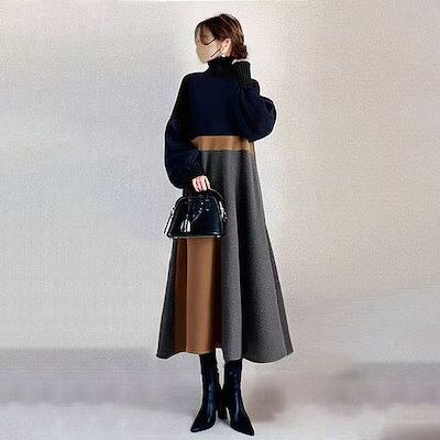 【超人気好評 急速出荷】日系 新商品 ハイネック ニットワンピース 秋冬 着痩せ 長袖 ロングワンピース 大きめサイズ シャツワンピース 韓国ファッション レディースファッション | KAGEYAMA-SECOND