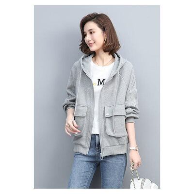 秋新作 パーカー ジャケット レディース ジップアップ パーカー体型カバー チュニック 長袖 ゆったり カジュアル アウター