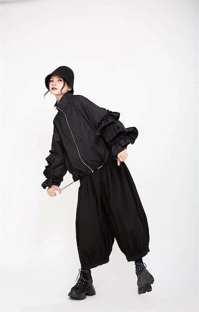 アシンメトリージャケット フリルパーカー レディース 袖フリル パーカー おしゃれ バックフリル 羽織り ジャケット ブルゾン ゆったり アウター 大人 ナチュラル 大きいサイズ バルーン袖 体型カバ | KAGEYAMA-SECOND